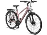 Das Trekkingrad hat ein zulässiges Gesamtgewicht von bis zu 95 kg, was es ideal für verschiedene Körpergrößen und -gewichte macht. Das Rosa Design des Rahmens ist nicht nur schick, sondern auch robust.